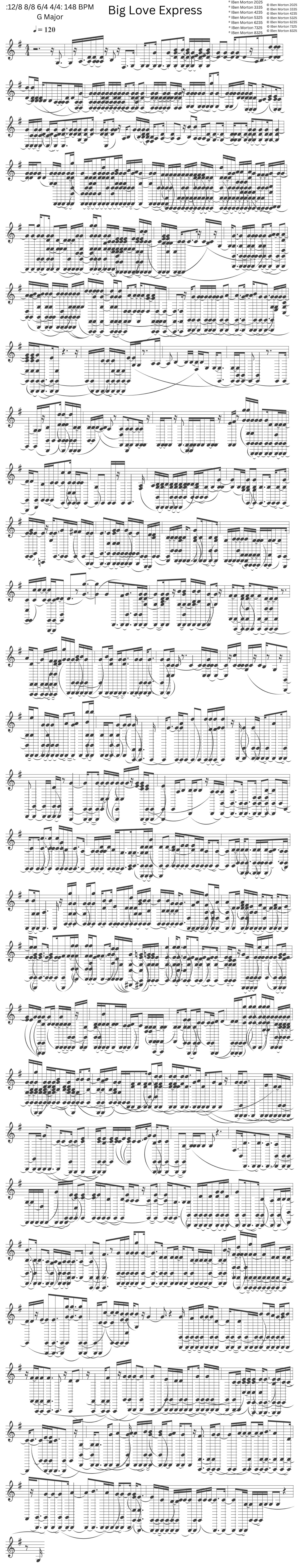 IBen Morton creates music often for the keys of C, E, G, F and B in “8 time”, often writing musical and rhythmic patterns that carry over the bar lines in 6/4 time, 8/8 time, 12/8 time, 32/16 time, 64/32 time and even 96/64 time, with wide sweeping vocals that ignore bar lines, emphasizing musical phrasing along with polyrhythmic percussion and synthesizer patterns. Emphasis is given to the swinging feel in a very flowing slow motion with syncopated notes chiming out in an 8 time feel with bass and vocals appearing to be in a solid “4/4” time.
